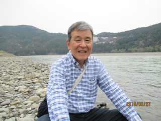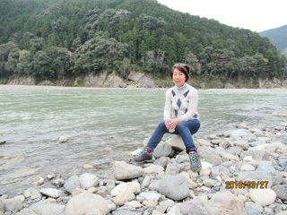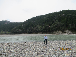 続いて、車で大斎原へ向かう。大鳥居を入り熊野川沿いの河原へ降りた。