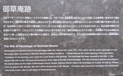 そこには、日蓮上人が9年間過ごされた御草庵跡がある。