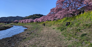 南伊豆町青野川沿い両岸4.2kmに植えられた河津桜を見にいく。