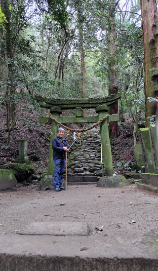 そこから、石の鳥居をくぐり、鬼の築いた石段(99段)という伝説が残る山道を登る。 ここは、熊野権現の境内になる。