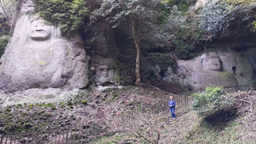 登った先に、巨大な岩壁に掘られた摩崖仏が現れる。
