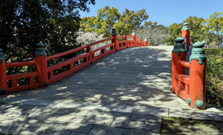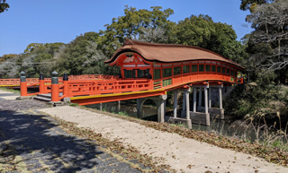 最後に、呉橋(現在は渡れない)へ。屋根のついた珍しい橋だ。檜皮葺、唐破風。