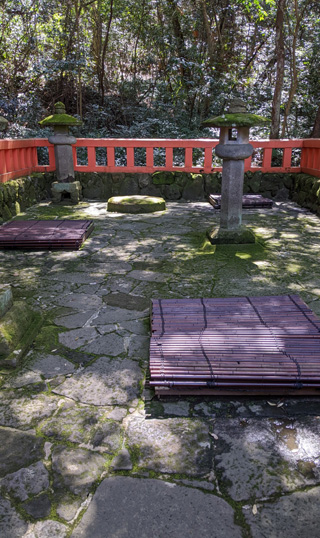参道の夫婦石(パワースポット)を踏んで、上宮でお参り。