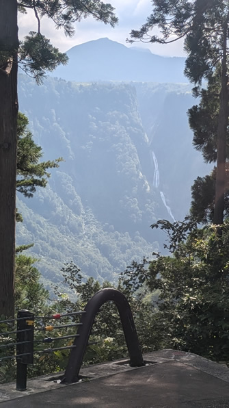 (左)バスから見えた称名の滝。