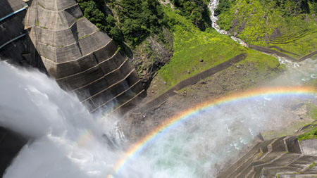黒部ダム駅から黒部ダムの上を歩いて黒部湖駅へ。