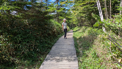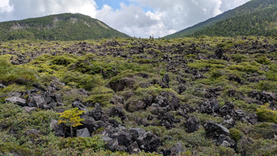 一般的には、ハイマツは森林限界2500mより上で育つはずなのだが、坪庭では2200m程しかないのにハイマツ帯が広がっている不思議な場所。