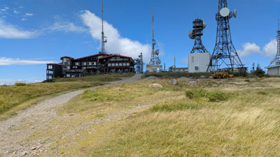 ホテルは、美ヶ原高原最高峰の王ケ頭2034mにあり、周りには電波塔が立ち並ぶ。